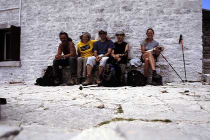 Il campo avanzato era in un posto idilliaco, in una valletta verde con le mucche attorno, tranquillo, asciutto, silenzio. Il tramonto su Astraka infonde calma, riflessione. Intanto che Papo vantava la sua abbronzatura a strisce, Max cercava di far funzionare il fornelletto a gas, mentre Marina e Edo avevano scoperto che lo sterco di mucca bruciava alla grande, così in poco tempo vicino alle tende si poteva ammirare un magnifico cumulo di m….pronta all’uso! In effetti alla sera non faceva poi tanto caldo.