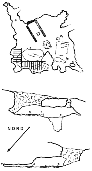 Proseguendo oltre il cumulo di massi che divide in due l'entrata, si giunge in un vano di dimensioni più ridotte del precedente e che è la sua continuazione. Successivamente, superando un basso passaggio si giunge alla base del pozzetto menzionato.”