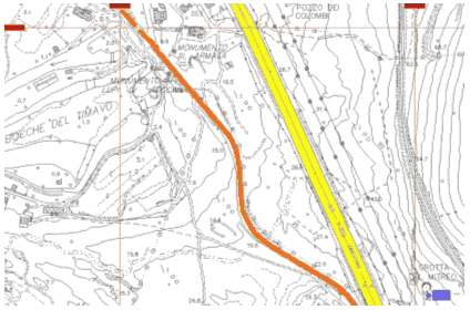 CTR 1:5000 – 110062 SAN GIOVANNI AL TIMAVO – S. P. Sistiana – Monfalcone; Raccordo Autostradale Trieste – Lisert A4.