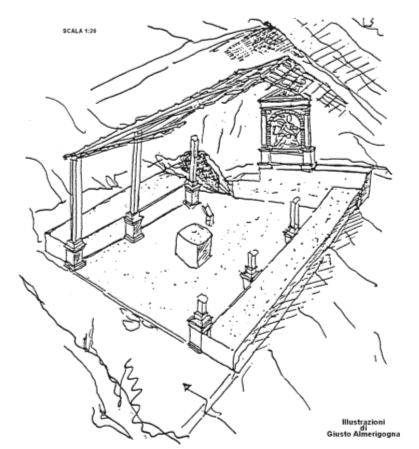 Schizzo ricostruttivo prospettico interno tempietto ipogeo al Timavo (Dott. Arch. Pross Gabrielli)
