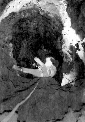a meno 170 metri sono stati individuati dei ragni «triglobi», ciechi, che vivono esclusivamente nelle grotte, nel buio più assoluto.