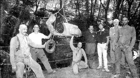 A svolgere la meritoria opera il gruppo speleologico San Giusto che, lavorando per 16 giornate, 1400 ore di discesa e l’impegno di 183 speleologi, all’inizio delle operazioni di pulizia aveva rinvenuto anche dei resti umani di più individui, forse suicidi o morti per involontaria caduta, come abbiamo già scritto precedentemente.