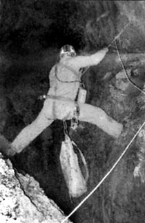 Speleologo in una grotta