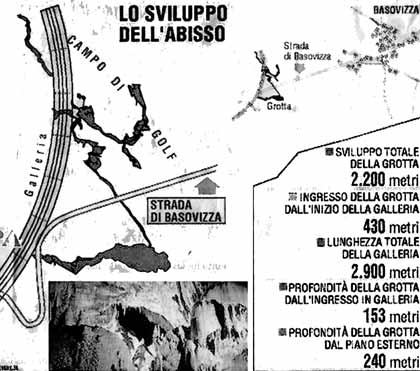 La ricerca degli speleologi della Commissione grotte della società Alpina delle Giulie è stata più facile del previsto; niente perforazioni, è bastato scavare circa 8 metri di terra e roccia per sbucare sopra quella città sotterranea trovata quasi per caso alla fine del 2004. L’ingresso originale della grotta all’interno della galleria, una volta entrata in funzione la grande viabilità, non potrà essere più utilizzato. Entro il 2008 la galleria di 2900 metri, divisa nella canna Trieste e Venezia, sarà ad esclusivo appannaggio di automobili e camion. Quella porta in acciaio che separa il cantiere dalla grotta, insomma, resterà sempre chiusa.