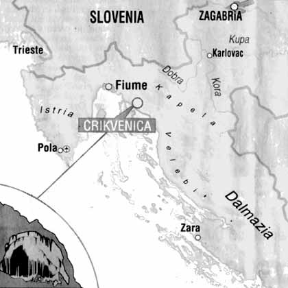 CRIKVENICA È nascosta nel folto della macchia mediterranea, ad un centinaio di metri dal mare e promette sviluppi interessanti. La grotta denominata Vrtare male, situata a poca distanza dalla località di villeggiatura di Dramalj (30 chilometri a est di Fiume), era nota da decenni alla popolazione del posto ma solo nel 1995 fu esplorata per la prima volta, precisamente dallo speleologo e fotografo della vicina Crikvenica, Dragan Pelic. Si tratta di una cavità verticale, e pertanto non percorribile se non da speleologi, lunga una trentina di metri e bagnata da un laghetto la cui profondità tocca gli 11 metri. Pelic vi ha scoperto una specie di gambero, il Troglocaris anophtalmus, che è cieco e vive esclusivamente in questi specifici habitat.