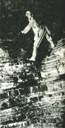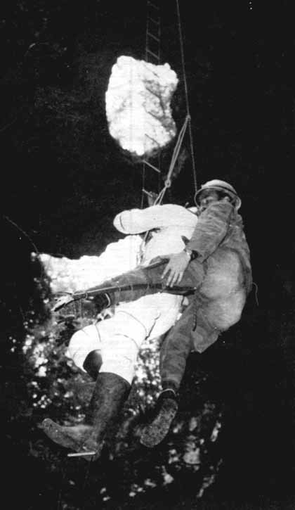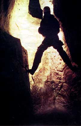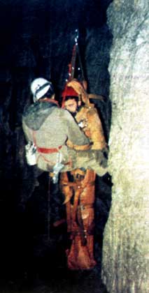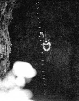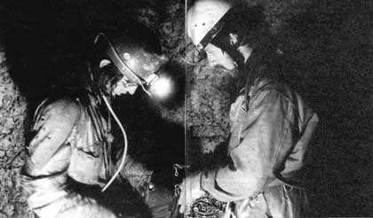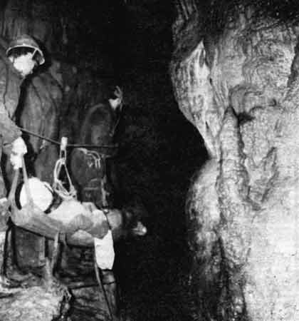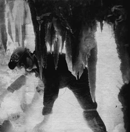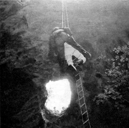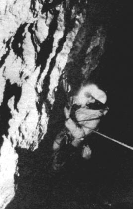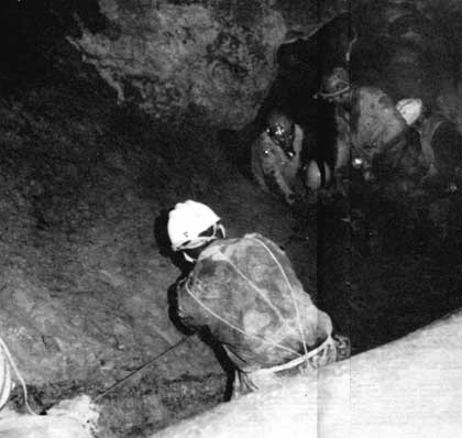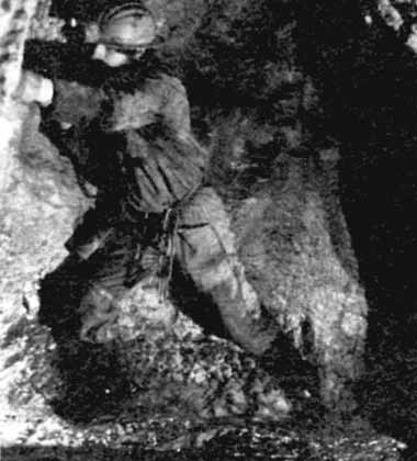 In alto, accanto al titolo, una stampa ai A.D. Golz che riproduce la discesa in un pozzo; le altre foto si riferiscono ad esplorazioni in alcune grotte del Friuli Venezia Giulia. (Si ringrazia per la collaborazione la Società Alpina delle Giulie e in particolare la Commissione Grotte)