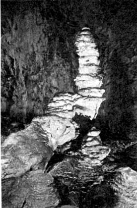 Così inizia una nuova costruzione dal basso verso l'alto in senso antigravitazionale. Queste colonne e altre concrezioni ascendenti vengono chiamate stalagmiti. Stalattiti e stalagmiti finiscono qualche volta per incontrarsi e saldarsi in un unico pilone: questa figura gli speleologi la chiamano: «gli amanti». Facilmente si può immaginare il pizzico di romanticismo posto laggiù nelle tenebre dove per migliaia di anni le due concrezioni sono state di fronte senza potersi toccare. Ora invece l'abbraccio sarà eterno.