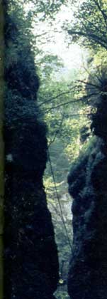 Grotta di S. Giovanni d'Antro. Si apre a metà di una ripida parete rocciosa, presso la borgata di Antro (Pulfero), 15 chilometri a Nord-Est di Cividale.