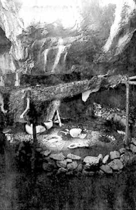 La ricostruzione di un insediamento preistorico all’interno della Grotta Nera. La cavità è diventata il primo museo del genere situato in un ipogeo naturale a livello europeo (Lasorte)
