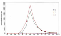 Il campionamento ai punti [S5 e 6] ha dato esito positivo il giorno 18/05/2004. Le curve di concentrazione di Uranina nei campioni d’acqua hanno registrato il picco al prelievo del giorno 20/05/2004 con 230 ppb al punto [S5], poi c’è stato il decremento della curva. In nessun altro punto campionato si sono misurati valori superiori al fondo naturale.