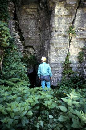 Grazie al risveglio dei placidi bovini al pascolo, ci incamminiamo di buon mattino per raggiungere le zone operative e dividerci un’altra volta. Sempre lungo il Vikos, sempre arrampicate e saliscendi, perlustrando ogni minima frattura che da lontano lasci presagire chissà quali vuoti, ogni dolina piccola o grande non sfugge all’occhio vigile dello speleo…ma quando mai! In quel punto saremmo passati più di una volta eppure ad un tratto Max nota uno strana pianta rampicante in mezzo alle rocce che attorniano una dolina…”Guarda tutto quel verde, sai strano, va veder…” . Mollo lo zaino e mi precipito verso il caprifoglio (era lui la strana pianta verde),