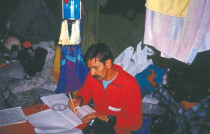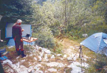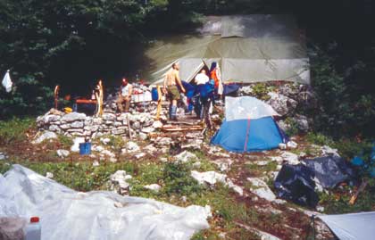 A quota 1400 m, è stato predisposto un campo base dove soggiornare durante le campagne estive e le puntate invernali. È stato riadattato un vecchio ricovero di pastori ricavandovi uno spazio coperto con un telone per la cucina e le attività comuni attorno a cui erano sistemate le tende per la notte.