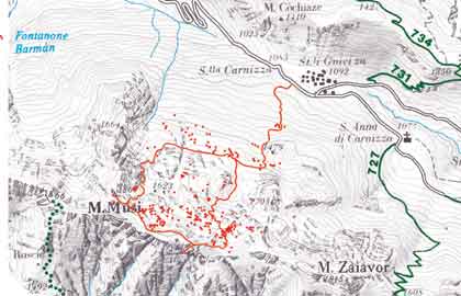 La posizione degli imbocchi delle cavità è stata verificata con il GPS e posizionata sulle carte georeferenziate mediante apposito software.